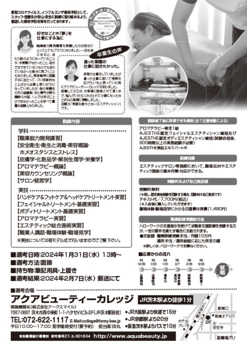 スクール見学の予約はアクアビューティーカレッジまで072-622-1117