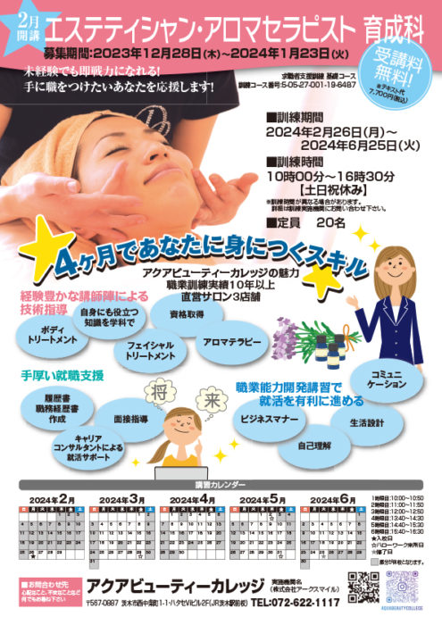 スクール見学の予約はアクアビューティーカレッジまで072-622-1117