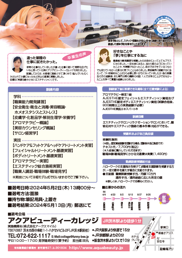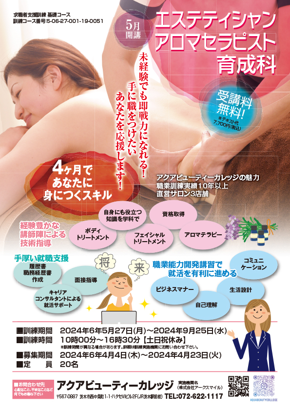 スクール見学の予約はアクアビューティーカレッジまで072-622-1117